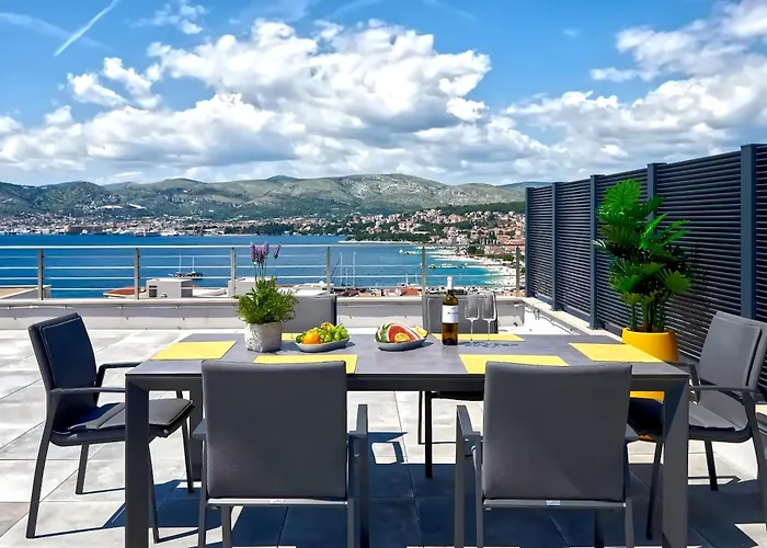 Penthouse Z Basenem I Widokiem Na Morze 아파트 아파트는 카매를랭고 성에서 3km 떨어져 있으며 플런지 풀, 플런지 풀, 플런지 풀과 같은 다양한 시설을 제공합니다. 숙소는 트로기르의 도심부에서 3km 떨어져 있습니다.
